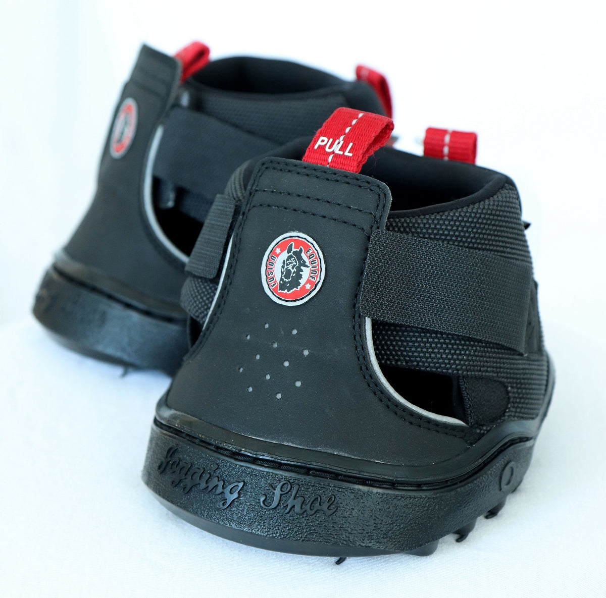 - The engineered flexible and elastic jogging shoe allows the hoof to sink into the rubber sole and allows the hoof to have full contact with the sole and ground to secure natural blood flow and hoof functions.